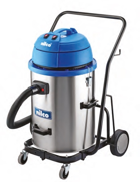 Dit model is voorzien van 2 verstevigde wielen achter en 2 zwenkwielen aan de voorzijde. De machine is spatwaterdicht en kan ingezet worden als stofzuiger en waterzuiger.